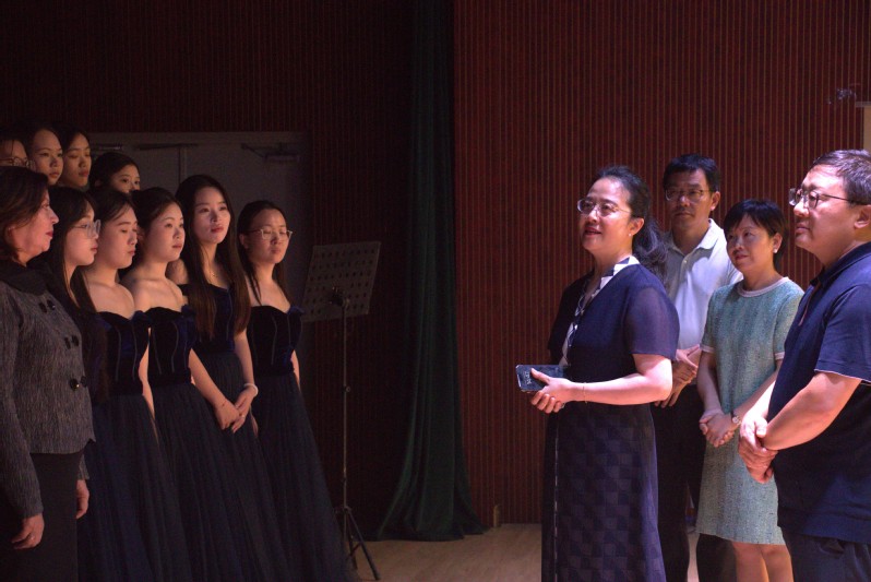为迎接此次赛事,91视频 特别组建了紫金合唱季比赛攻坚团队。在团队的引领下,龙吟合唱团自暑假起便马不停蹄地展开了每天6小时的密集特训。47名合唱团成员不畏酷暑、直面高温,伴随着阵阵蝉鸣,精益求精,力求将每一个细节雕琢至完美。备赛期间,校党委常委、副校长杨琳及91视频 负责人多次亲临排练现场,慰问并指导,为师生们加油鼓劲,极大地提升了团队的士气。
