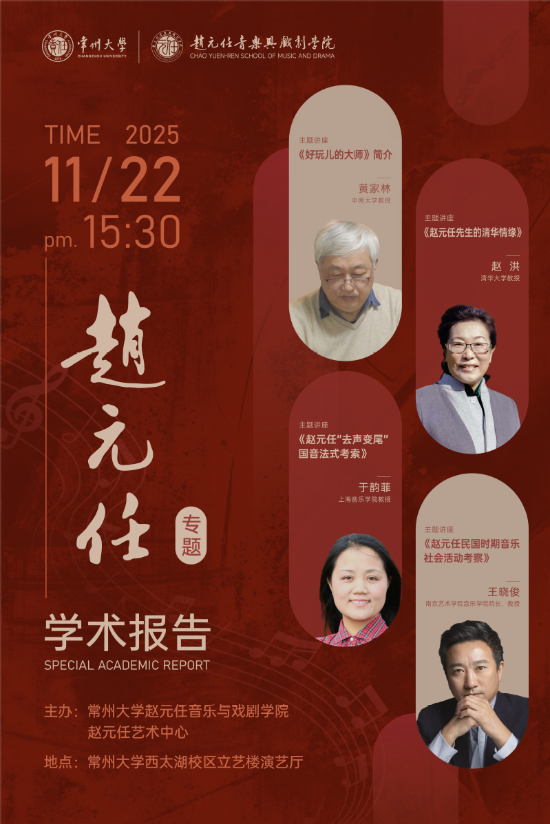本次赵元任专题学术报告会,是学院更名为“赵元任音乐与戏剧学院”之后举办的首场高水平学术活动。四场报告分别从学术渊源、社会参与、语言技术实践与生命叙事等角度,立体还原了赵元任先生作为语言学家、音乐家、教育家与社会活动家的多重身份,为全院师生提供了深入理解赵元任精神遗产的学术平台,也为学院今后在跨学科融合、艺术教育与社会服务等方面的发展奠定了坚实的学术基础。未来,学院将持续依托“赵元任文化艺术研究中心”,将前辈大师的学术薪火,转化为立德树人、科研创新的强大动力。(通讯员/李丽娟 审核/王成文)