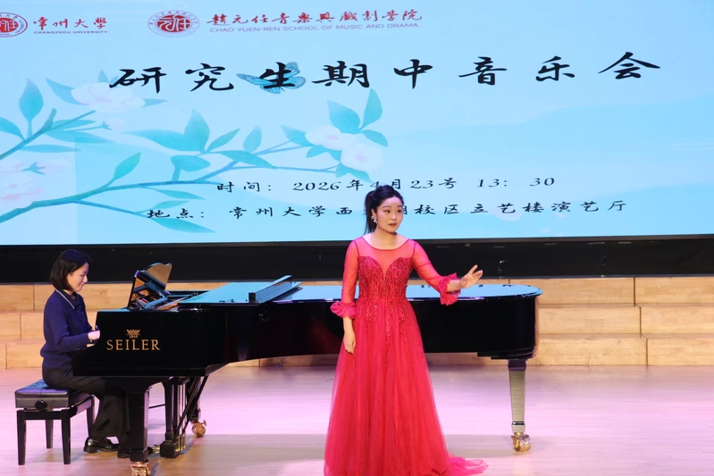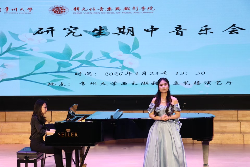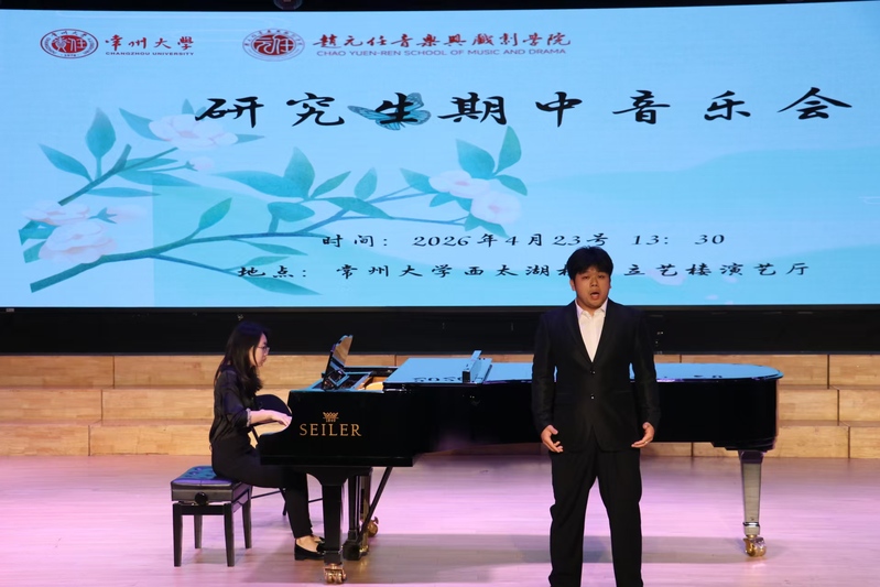 2026 年 4 月 23 日 13:30,91视频 赵元任音乐与戏剧学院 2025—2026 学年第二学期声乐表演方向硕士研究生期中音乐会在西太湖校区立艺楼演艺厅顺利举办。研一、研二年级的8名声乐表演方向研究生现场演绎24首中外经典声乐作品。学院领导及音乐系全体师生共同观看了本次音乐会。