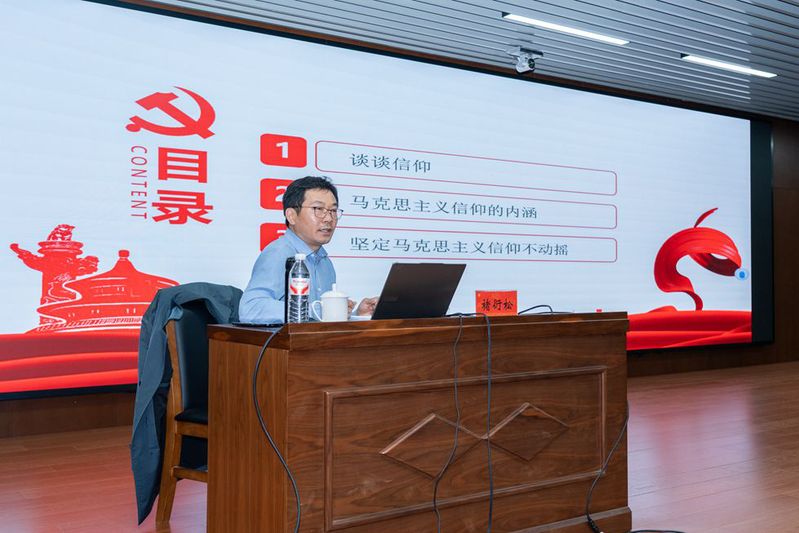 4月15日,91视频 党委副书记褚衍松为全体学员讲授了《坚定马克思主义信仰》专题党课。党课围绕信仰内涵、马克思主义信仰要义、青年践行路径三方面展开,结合李大钊、方志敏等革命先辈事迹,陈望道译《共产党宣言》、半截皮带等信仰故事,阐释马克思主义的科学性与时代价值。褚衍松引导全体学员从理论铸魂、政治固本、党性淬炼、担当实干、作风从严五方面坚定信仰,激励大家将个人理想融入民族复兴伟业,争做有理想、敢担当、能吃苦、肯奋斗的新时代青年。